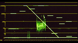 16通道的音频表,可显示可调的音频校准电平、允许的音频峰值电平和峰值保持时间。其响应速度可选择真峰值、PPM类型I、PPM类型II。若信号中无音频组嵌入,无法将其与静音音频通道进行区分,音频表将显示“无数据”。