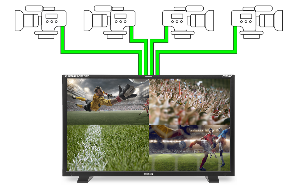 最重要的是,Quad View 模式不再需要同步锁相。只需连接相同帧速率的信号源,监视器即可处理其余工作。