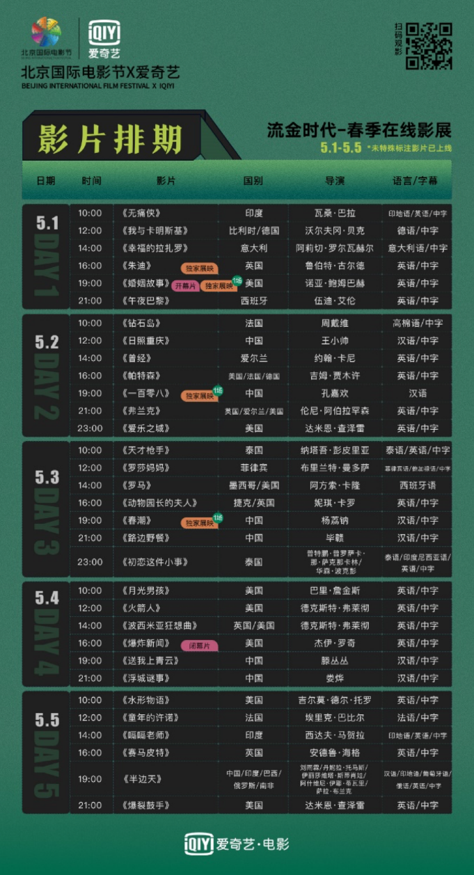 北京国际电影节原定于4月中旬举行,因新冠疫情现已宣布无限期推迟。主办方近日与爱奇艺合作,以后者为平台举办线上小规模电影放映活动“春季在线影展”。