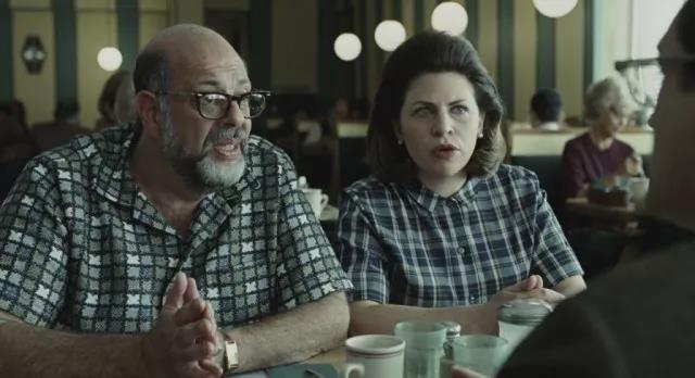 在上面这个双人镜头里,可以看到摄像机右侧的窗外光线很充足,是晴天的样子。其实这是镝灯照出来的效果,因为拍这个镜头时,天色已经暗下来了。此外,还可看到在摄像机左侧,演员的脸部有些许的补光,这是摄像机左侧的Kino打出来的光。