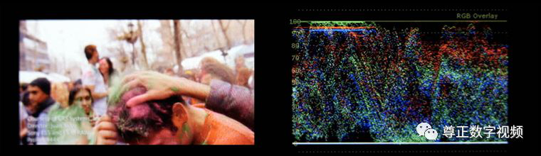 RGB重叠显示波形在同一范围内显示红、绿、蓝三个分离的波形,重叠波形示波器就是把RGB分量波形示波器上的三个通道叠加在一起的示波器。和RGB显示示波器相比,显示的是相同的信息,采用不同的表现方式,三个通道的波形叠加为一个,方便综合判断RGB分量的平衡关系。