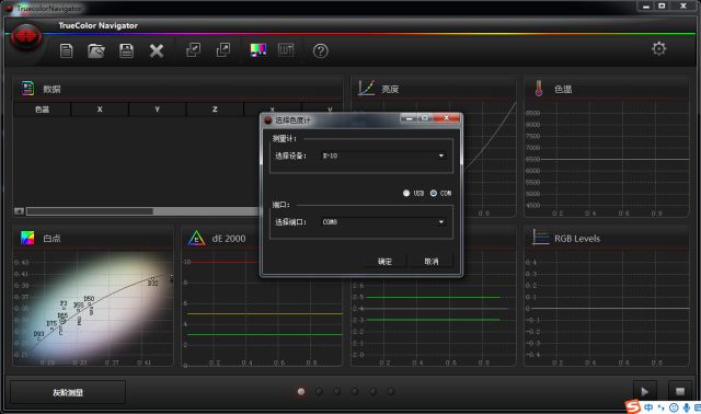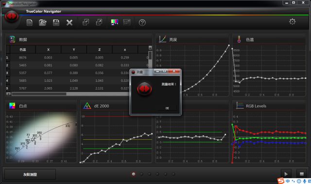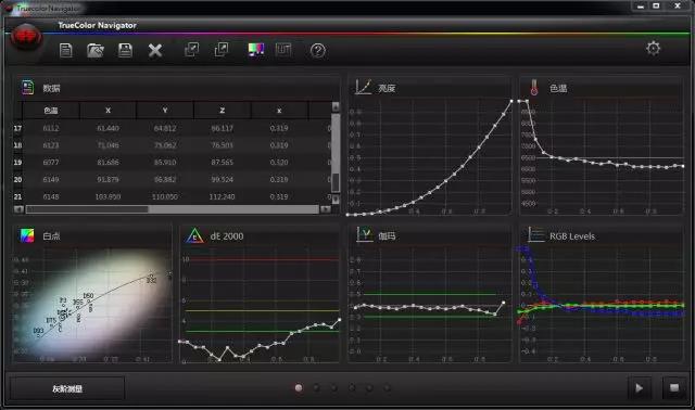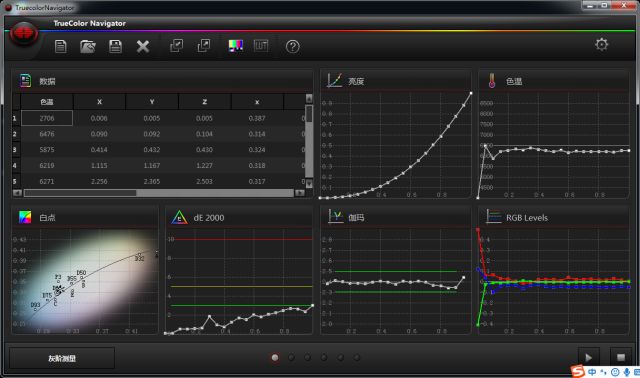 PC端打开TruecolorNavigator软件连接CS2000,点击灰阶测试图标,把测试窗口拖到目标显示设备(提前通过HDMI,DP转DVI-D的方式接入监视器)进行一次测试,看一下监视器的色彩等指标,方便和K10的读取结果进行比较,注意保存结果: