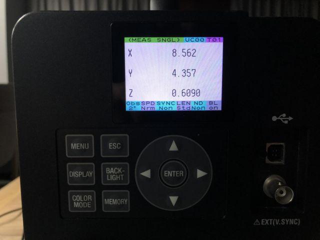 效果非常明显,经过色度计校正RGBLevels,DE2000,亮度等指标,接近CS2000光谱仪的测试结果。但是要注意,一种背光类型或光谱特征接近的显示面板就要做一组校正矩阵数据。这样的仪器组合可以很大程度利用色度计和光谱仪的优点,更好的完成显示设备校正流程。