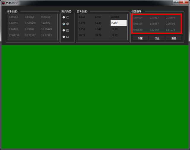 全部输入完成后,点击校正,会自动生成一个校正矩阵,校正矩阵下方数值会发生变化