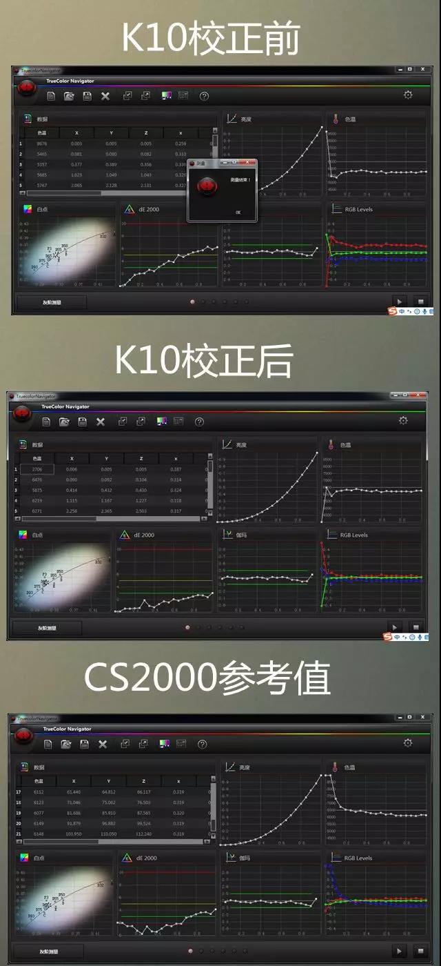 用CS2000校正K10,可以由厂家软件写入K10内部,也可以借助色彩管理软件的探针校正功能写到PC上储存在电脑软件中,其原理都是一样的。