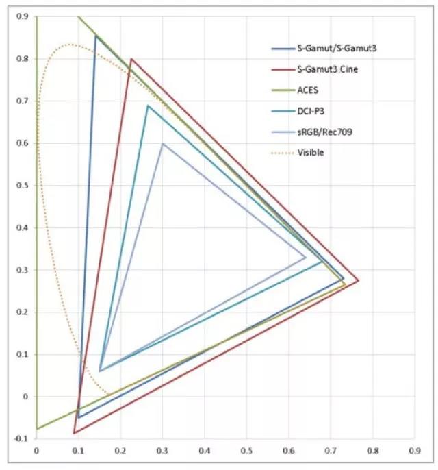 对摄影指导们而言,摄影机的色域可能一点意义都没有。我们或许可以根据不同厂商对相机感光元件的色彩存储空间来推断摄影机/相机的能力范围,但是这样的图表并不能告诉我们相机实际的还原能力。