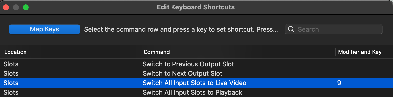 • 将合成槽的源选择,与输入槽模式“实时/回放/参考”、“将所有输入槽切换为实时视频/回放”以及输出路由选项“强制槽跟随实时视频”组合在一起