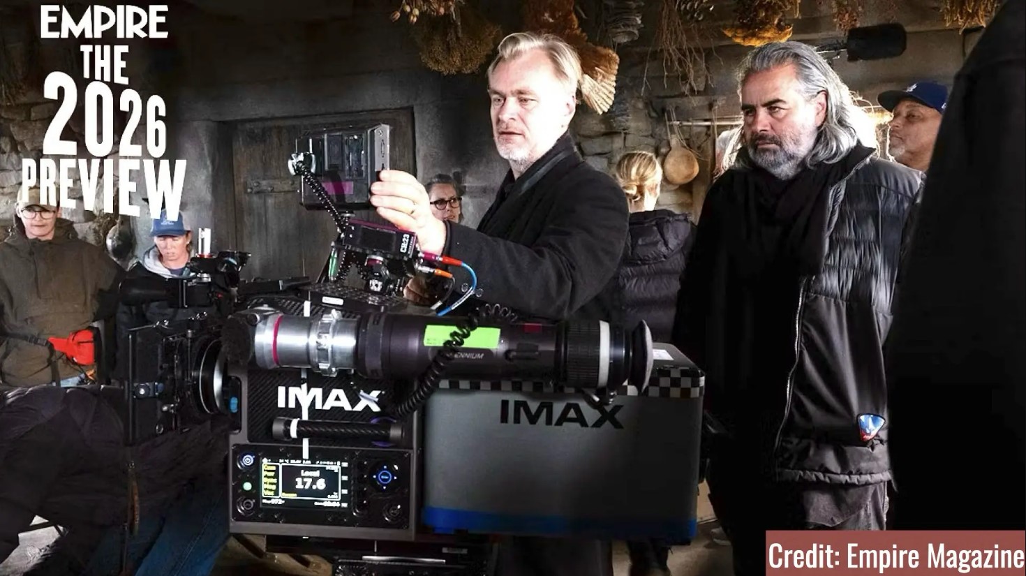 《帝国》(Empire)杂志日前公开了克里斯托弗·诺兰(Christopher Nolan)《奥德赛》(The Odyssey)的首张幕后照,而这是一个电影技术发展的历史性时刻。这是神秘的新一代 IMAX 胶片摄影机史上首次在真实片场中被目击,证实了诺兰和他信任的摄影指导(DP)霍伊特·范·霍特玛(Hoyte van Hoytema)引领着这款备受期待的 65mm “巨兽”的首次亮相。