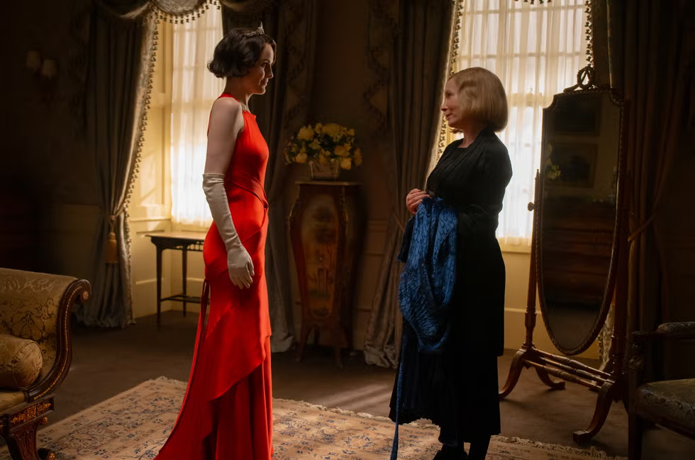 除了唐顿庄园,我们在《唐顿庄园3》中还更多地看到了克劳利家族位于伦敦的格兰瑟姆庄园。这座位于英格兰伯克郡巴西尔登公园的18世纪宅邸,为庄园奢华的室内装饰提供了背景,其中包括一间悬挂着璀璨枝形吊灯的红色客厅。