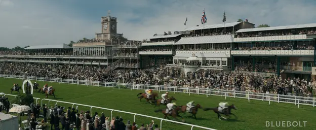 BlueBolt 团队还面临着重现皇家阿斯科特赛马日场景的挑战。拍摄地点位于里彭赛马场,其中包括 CG 看台和周边看台,以及无缝衔接的 2D 和 3D 人群模拟。