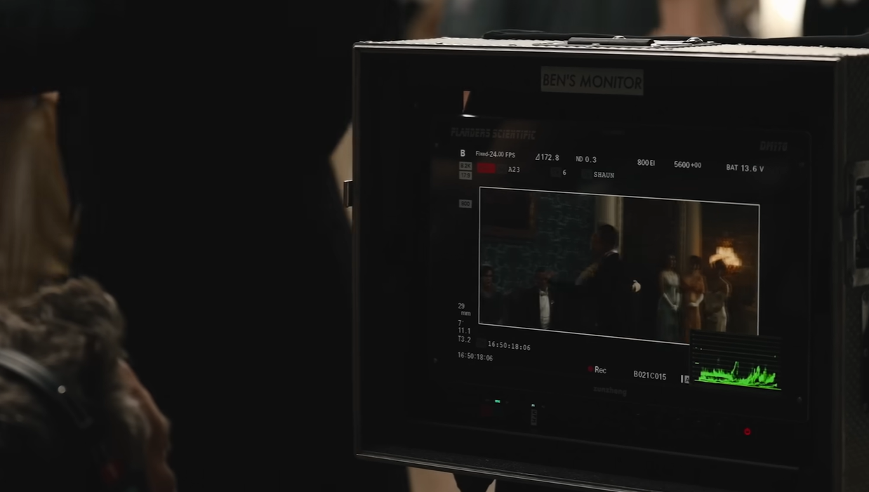 “为了拍摄阿斯科特赛马会的观众,我们同时架设了多台摄影机拍摄每个场景。”巴杰特说道,“我们现场的视效团队协助协调了这些版本的拍摄,并遵循着一个基本原则:主镜头拍摄的人群要包含离摄影机最近的部分,然后进行人群模拟拍摄,直到人群规模足够小,可以用 CG 特效来表现远处的人群。DP 斯密哈德非常乐于助人且耐心,并为我们提供了许多优秀的素材。”