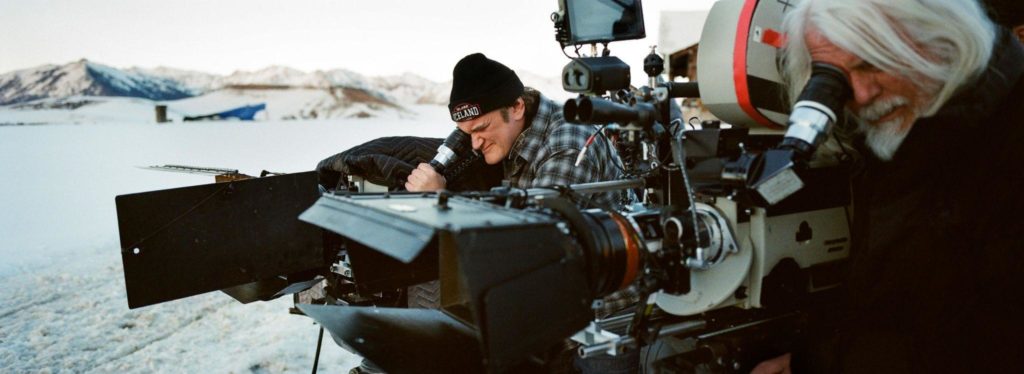 导演昆汀·塔伦蒂诺(左)和摄影指导罗伯特·理查森(Robert Richardson,ASC)在拍摄《八恶人》(2015)时进行了一次少见的双机拍摄。