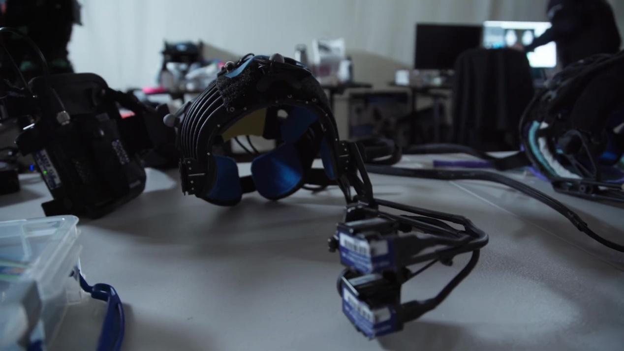 “第三类摄影机包含两台位于头部装置上的头戴式摄影机(Head Mounted Camera,缩写 HMC),可以逐帧地构建面部形貌。我们在屏幕上呈现的画面的价值都基于这些具体表演。利用第四种摄影机,我们进行粗略的摄影机走位拍摄。第一遍代表所有基础角度,然后还有一遍用于剪辑,之后再跟阿詹进行审核。他会进行一次完整的摄影机走位拍摄,对特写镜头和双人镜头做出决策,并设定好场景节奏。在某些意义上,这模拟了真人拍摄的范式,只不过我们的优势在于可以选出最佳表演。所以我们自然能得到表演的连贯性,因为我们已经精挑细选出搭配起来效果最好的表演了。”