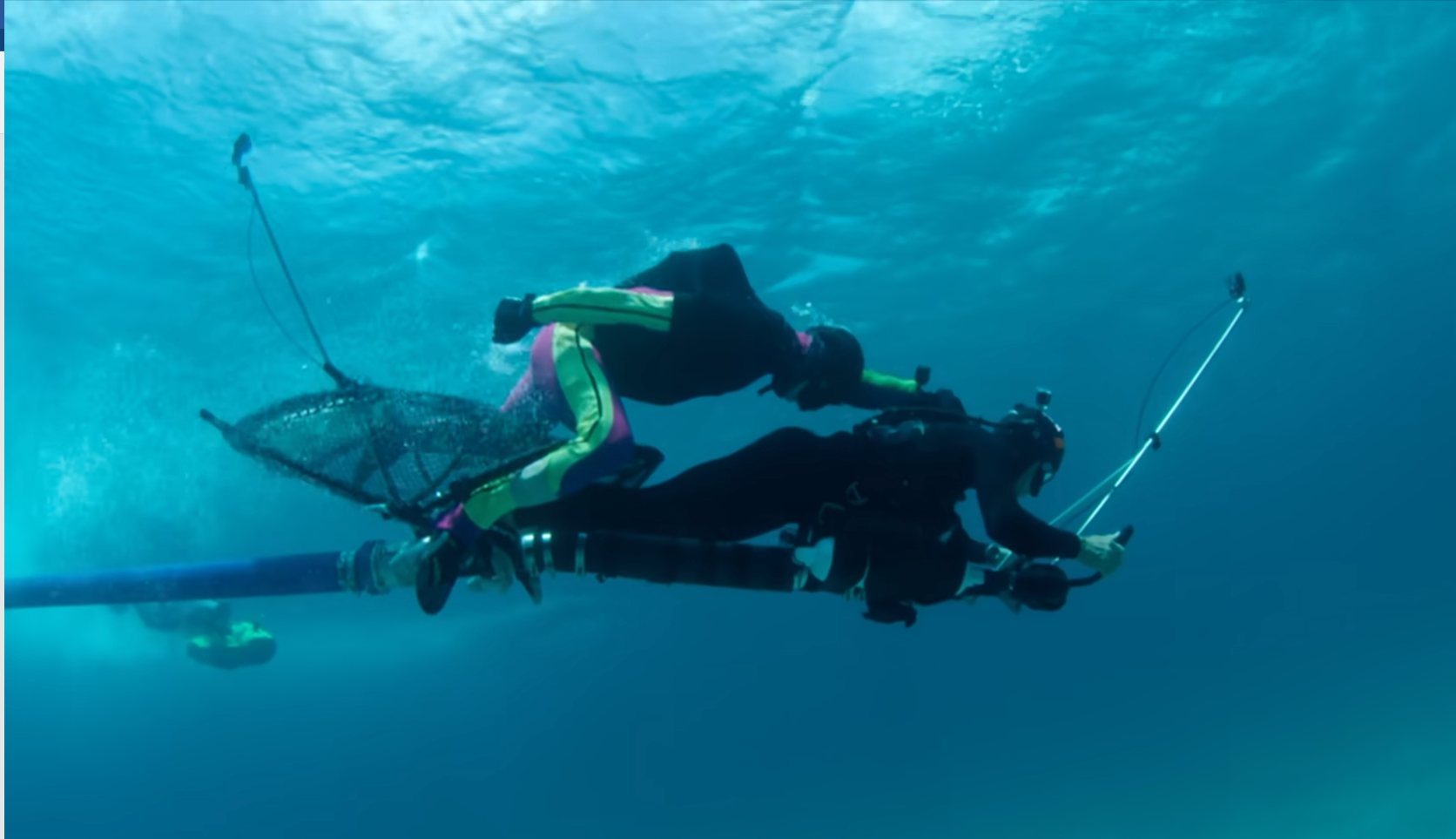 全程参与了3部《阿凡达》的特技指导兼二组导演加雷特·瓦伦(Garrett Warren)揭秘道:“水中的图鲲是由太阳马戏团的水下表演者们饰演的。这部电影的制作靠的是实拍的、摄影机内的真实动作 —— 所见都是真的。我们真的弄沉了一艘船。当有人驭‘鸟’飞行时,我们并不是用动画做的,而是通过特殊装置进行拍摄。当角色在水下骑伊鲁时,靠的是我们搭建的一套可在水下行驶的喷气装置,一个人来驾驶它,另一个人抓着那个人的颈后,在水下以20节的速度飞行。”