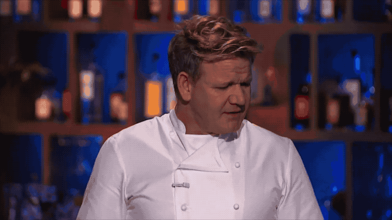 随后拉姆齐叫到了万的名字,音乐提示逐渐增强,此时剪辑师切到万的一个沉默的反应镜头,接着是选手爱丽丝沉默的反应镜头。最后,提示进行了强调 —— 此时拉姆齐说出了他的最终裁决,不带任何音乐。剪辑师成功完成了收尾 —— 他把下一段音乐提示的第一个节拍精准落在“胜利者”万的反应镜头上。