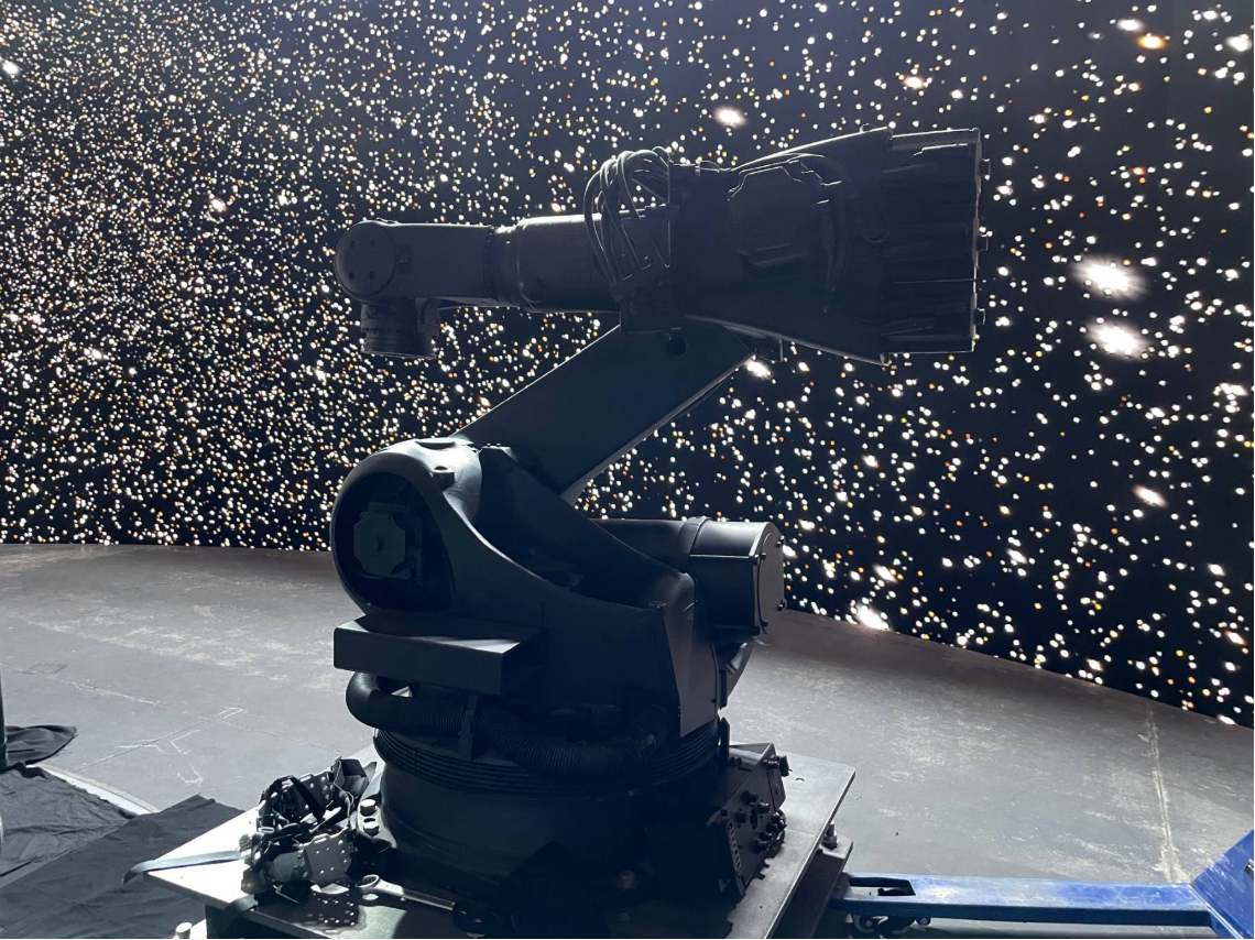 《Goodbye》的挑战在于紧迫的日程与紧张的预算。虽然我们辅助创建了卫星的背景与后期渲染,但我们建议导演及其视效合作方准备特定的预拍摄元素,比如火焰和岩浆效果。这些元素会被导入和转化为 Notch 文件,以确保流畅的片场回放 —— 有时候真的在拍摄当天才进行处理。
