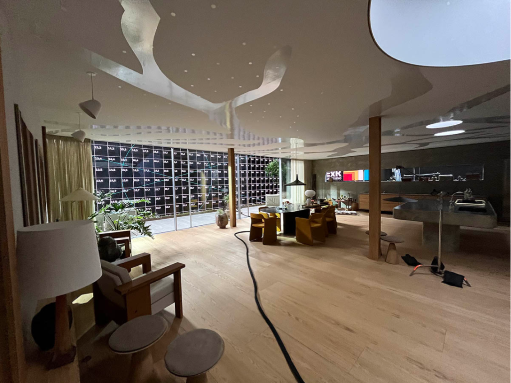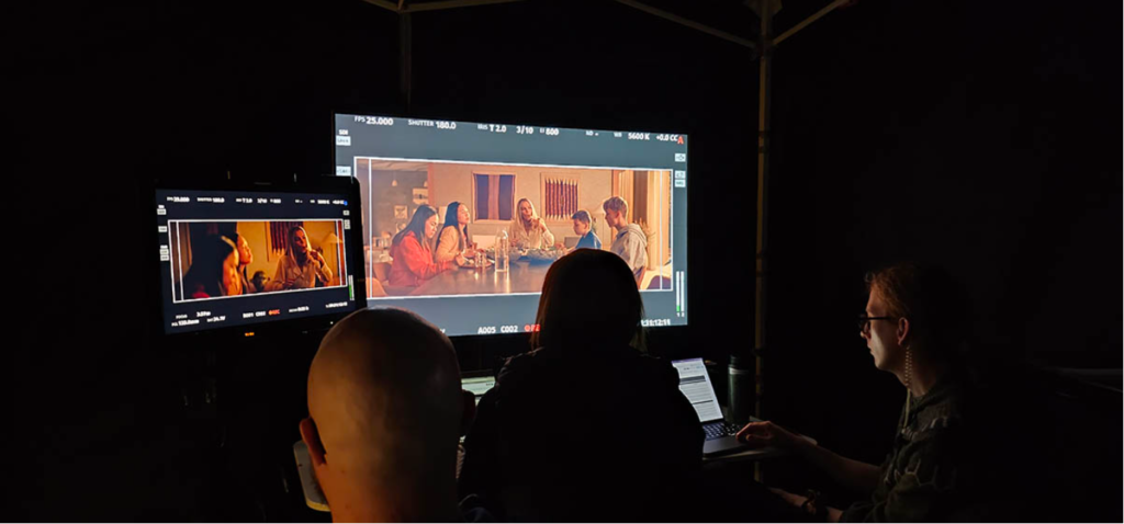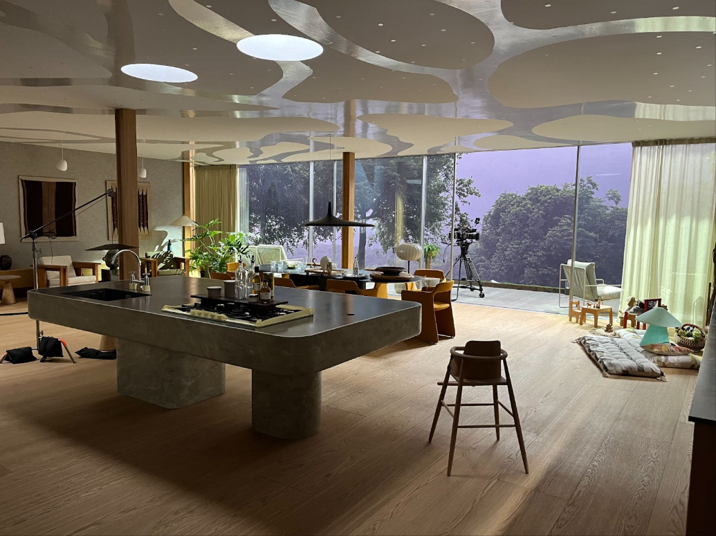 这正是虚拟制作能提供关键支持的地方。LED 墙安装在布景的全景窗外,模拟花园的景观。这样的设置能完全控制布光、天气和一天中的时段 —— 早春的丹麦树木还光秃秃的,因此虚拟制作的这些功能至关重要。除了有助于连戏,这个虚拟环境还成为了一种叙事工具:LED 墙上显示的天气和光线条件用于增强屋内的情感基调,让外景的氛围匹配故事的情绪。
