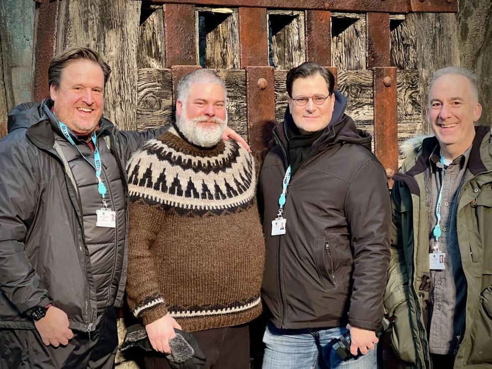(从左至右)视效总监克里斯蒂安·曼茨、导演迪恩·戴布洛伊、动画总监格伦·麦金托什、视效制片人克里斯·雷默
