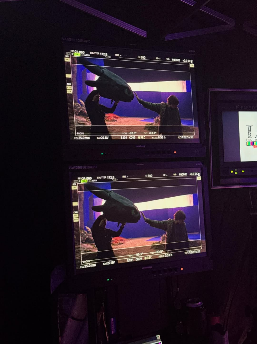 《新·驯龙高手》拍摄现场,两台尊正DM系列监视器直击男主与没牙仔之间的互动