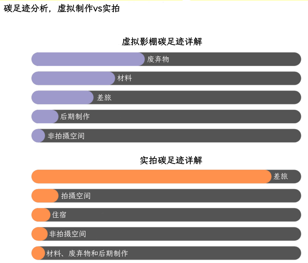 调查结果显示,受访者普遍缺乏对虚拟制作的增长所带来的环境效益的了解,但对比虚拟布景和实地拍摄的二氧化碳足迹可以让我们真实地了解虚拟制作最终的环境影响(图5)。
