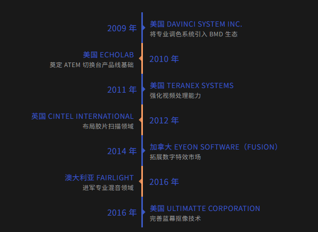 同时,作为 Blackmagic Design (BMD)联合创始人与合伙人,8年间他主导并参与了7次影响行业格局的重要收购: