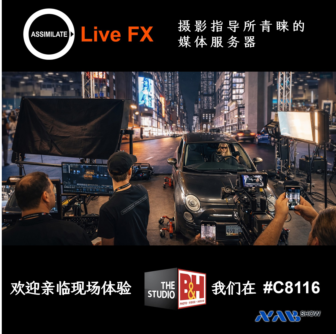 本届展会上,Assimilate 携手 The Studio B&H 精心准备了虚拟制作拍摄设置,为参会者展示高效且规模灵活可变的行车场景设置,包括基于图像的照明(IBL)工作流 —— 现场设置均由 Live FX Studio 驱动。