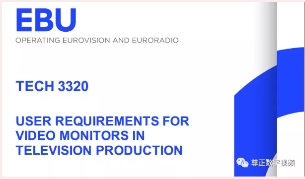 EBU3320规定了在电视制作中视频监视器的使用要求。根据EBU对视频监视器的分类及其在电视制作领域的应用定义了广播级监视器的技术特征。