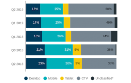 Extreme Reach(ER)公司基于其广告桥平台今年第二季《视频基准点》的报告反映,上网电视(CTV)在所有视频广告印象中,比去年上升了31%,占有50%的比例,即两倍于它所连续五季度超越移动电视的指标。随着更多观众的媒体消费习惯趋向采用OTT器件和流业务,广告商相应不仅重视CTV上的消费者观看内容,而且重视广告性能。较长广告以及广告平台可靠性的观众平均吸引力已提升到95%,虚假广告印象在显著下降,ER深信CTV上的广告消费看涨。