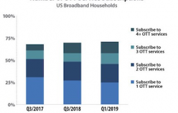 帕克协会题为《视频业务之合作,组织与聚合》的一份研究报告表明,美国订购多项OTT的宽带家庭比例,自2014年以来已增加了130%;到2019年时,46%的家庭订购了两个或更多OTT服务,而在2014和2017年时,分别只有20%和三分之一。视频服务业中出现了多种合作和激烈竞争的趋势,例如内容供应商发布直接到消费者服务的趋势,OTT服务中缺乏差异性,以及较大规模商家之间的现有基础设施和消费者关系。一方面,业界对OTT视频类型业务的总体接受程度和认知度是高的,另一方面对各种特色服务的了解却很不足;导致较小型业务难以攀比较大型同行的规模、营收额和销售能力。当前在美国,十个OTT业务中将近有三个是在亚马逊主视频频道集成平台上的,此比例,是两年前的四倍以上。