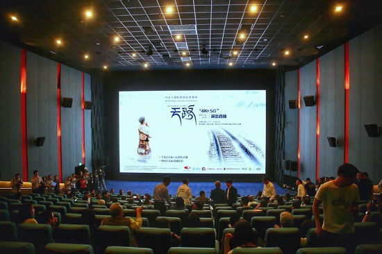 5月11日,国家大剧院原创民族舞剧《天路》演出“4K+5G”直播活动在首都电影院9号厅进行,节目通过影厅LED屏、手机屏和电视机屏等多平台同步呈现,数百名观众现场见证全球首次“4K+5G”多平台直播成功。
