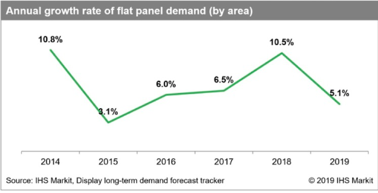 商业信息供应商IHS Markit的调研显示,平板显示市场需求复兴,年增长率4年来首次达到两位百分数,10.5%;总量达2.21亿平米,其中对OLED电视机的需求年度同比提升65.6%,达300万平米;LCD电视机平板需求提升10.7% ,达1.54亿平米。就机型言,对60英寸(含)以上的需求贡献最大。对电视机、智能手机和台式监视屏需求急速增长的主要驱动因素是价位下跌。